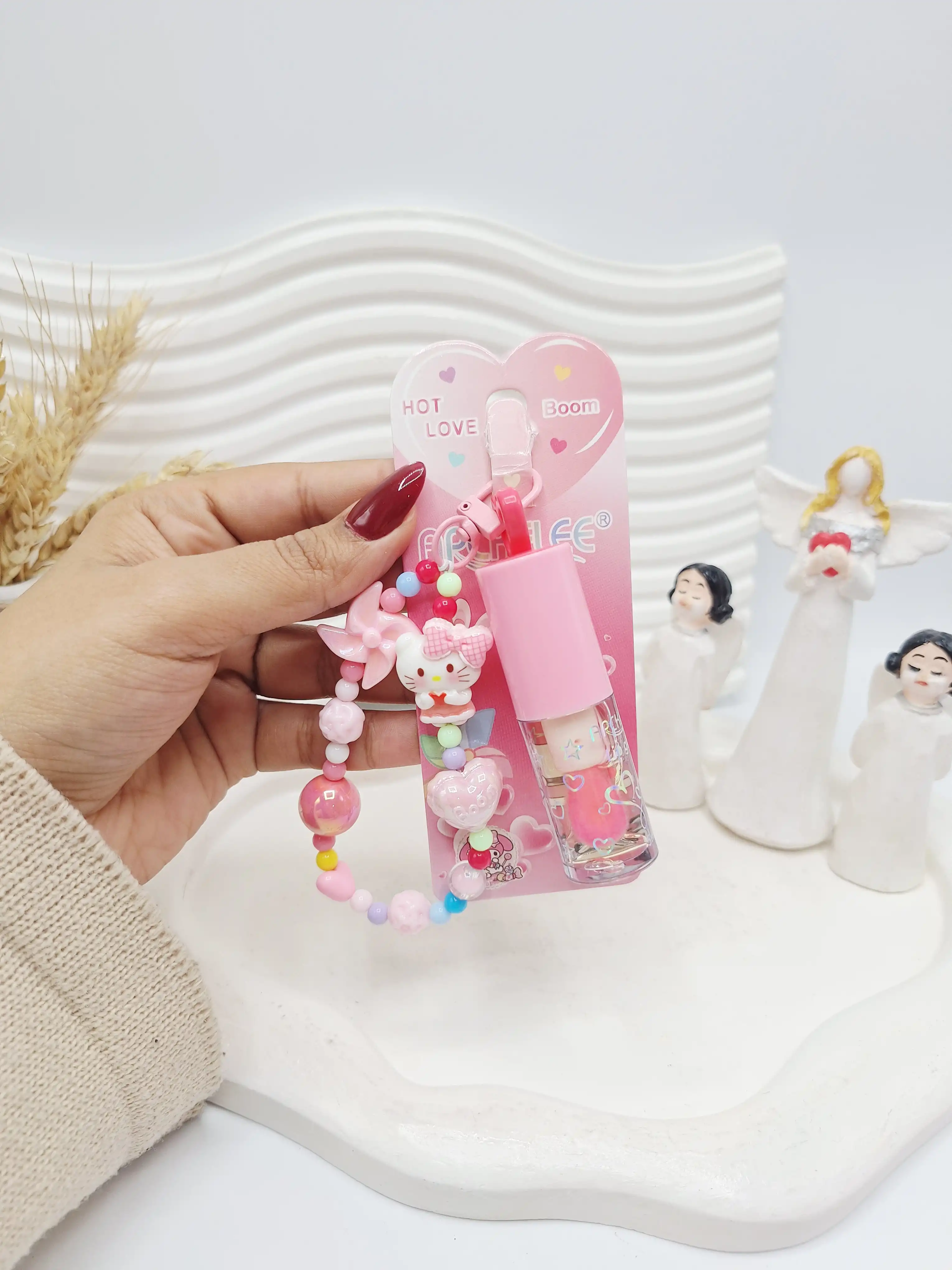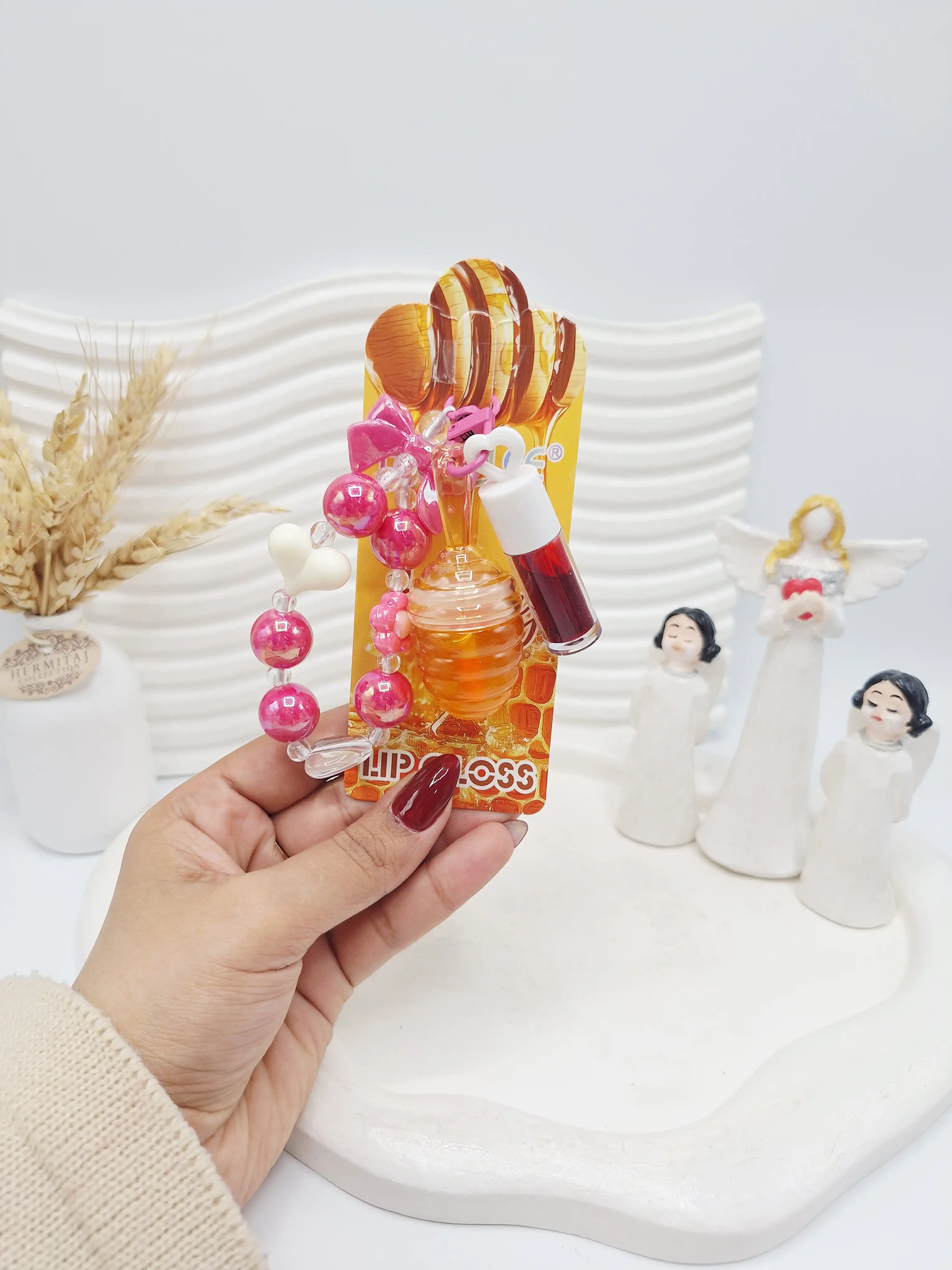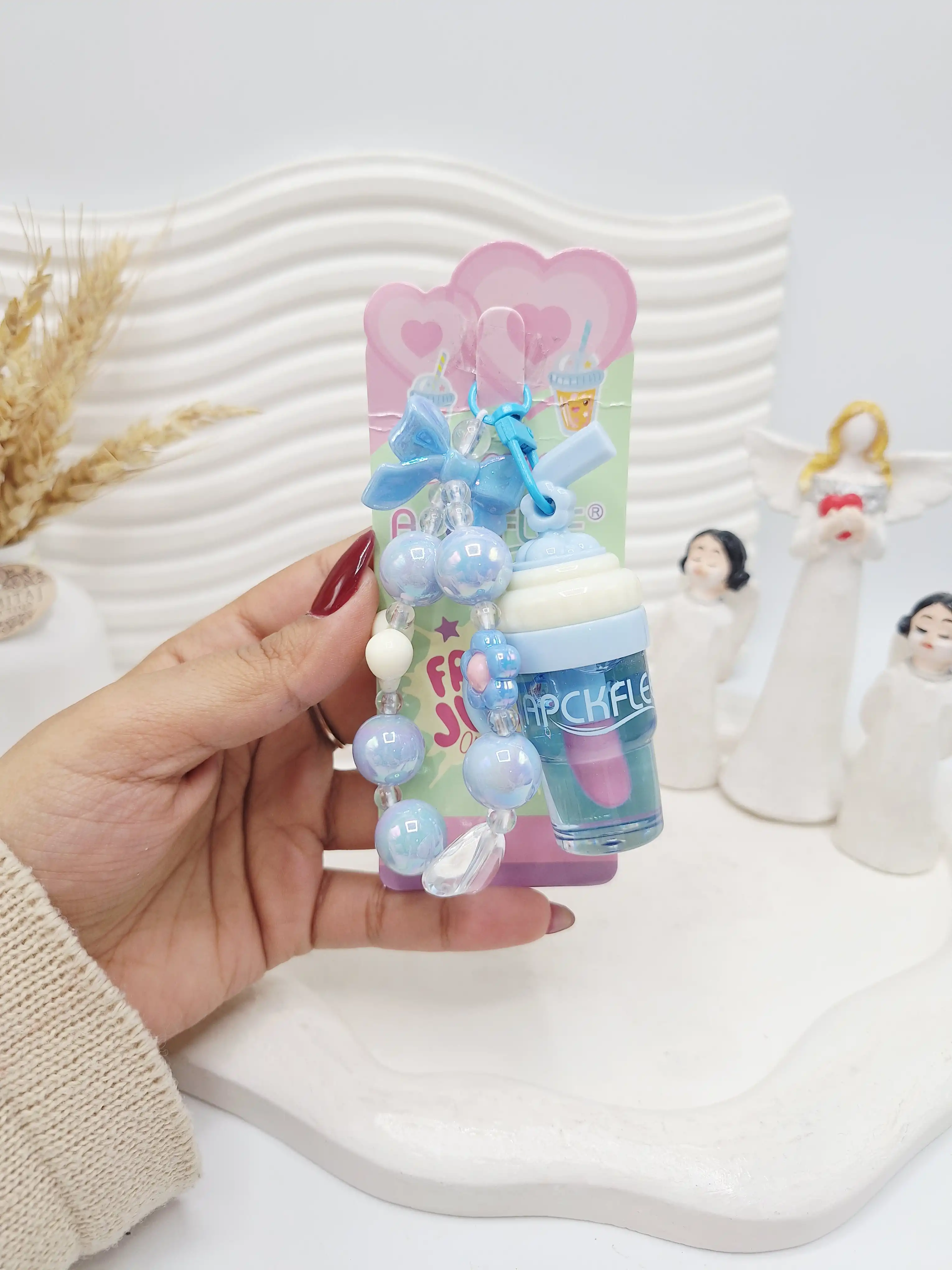 ست لیپ گلاس حرارتی آویز دار کرومی به همراه دستبند برند APCKFLEE کد 028