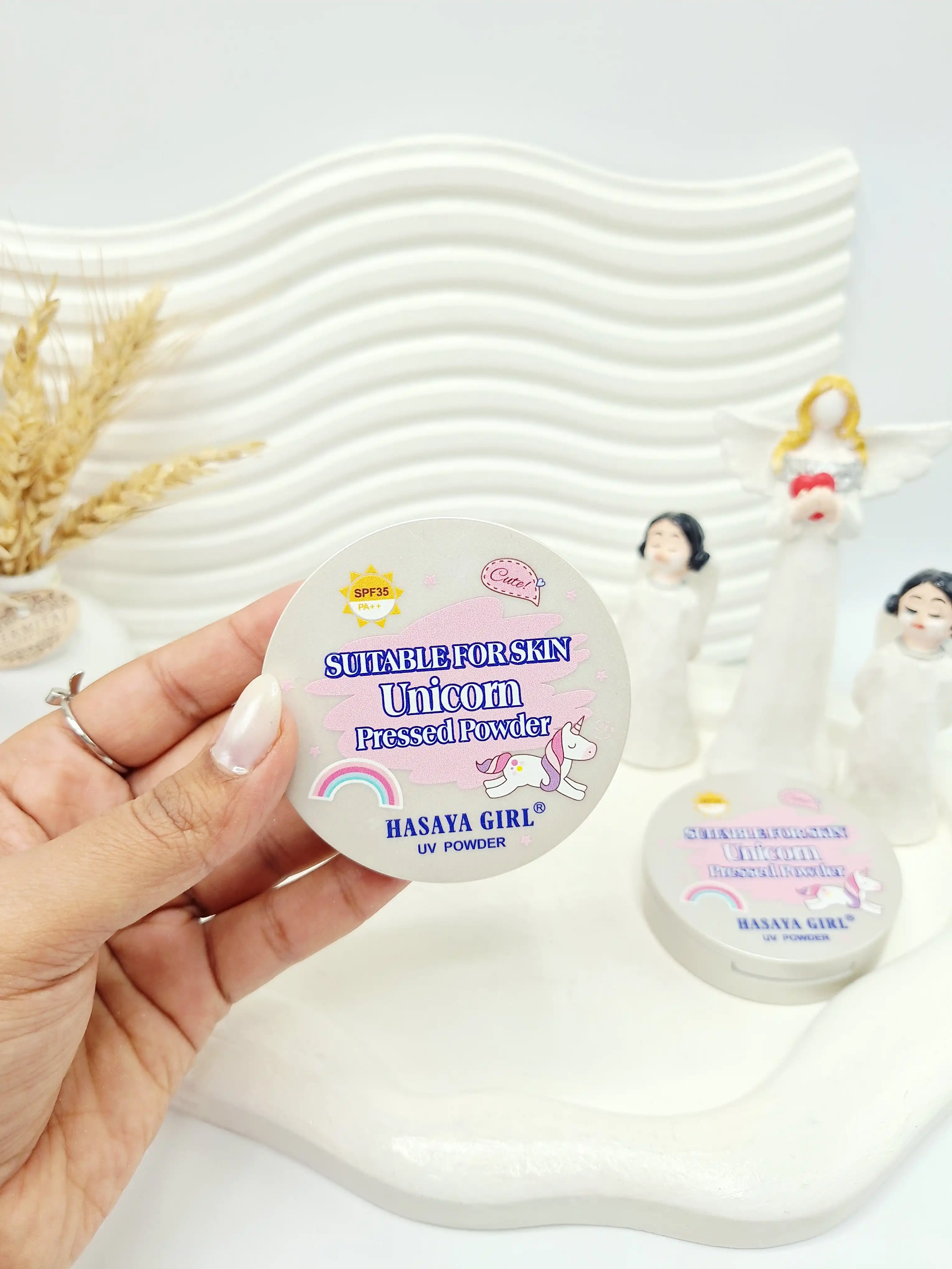 پنکک پودر فشرده مات کننده و کنترل کننده چربی طرح یونیکورن HASAYA GIRL کد 3823