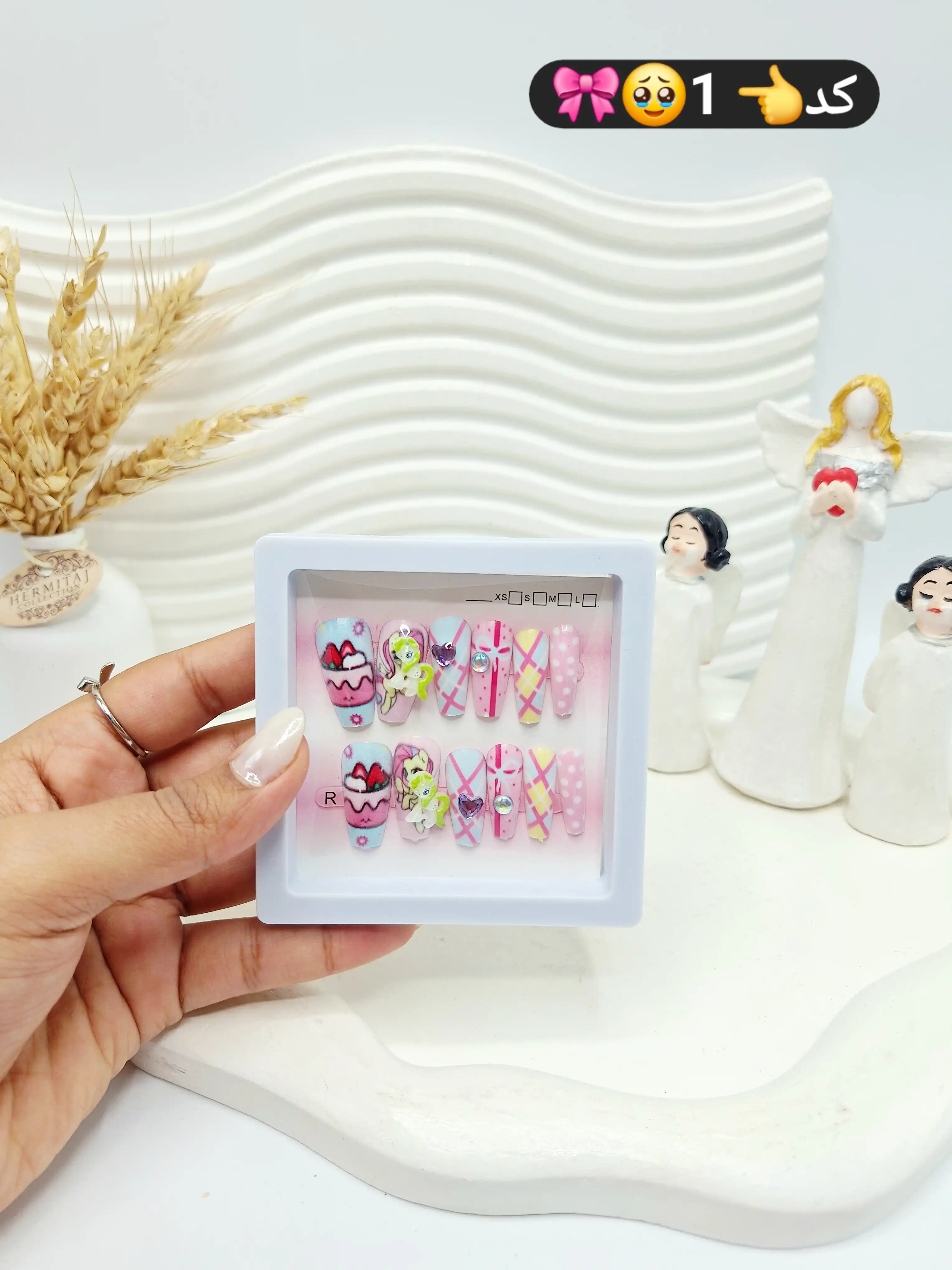 پک اختصاصی کامل ناخن مصنوعی طرح فانتری کیوت با چسپ ناخن دو طرفه (کیفیت تضمینی )