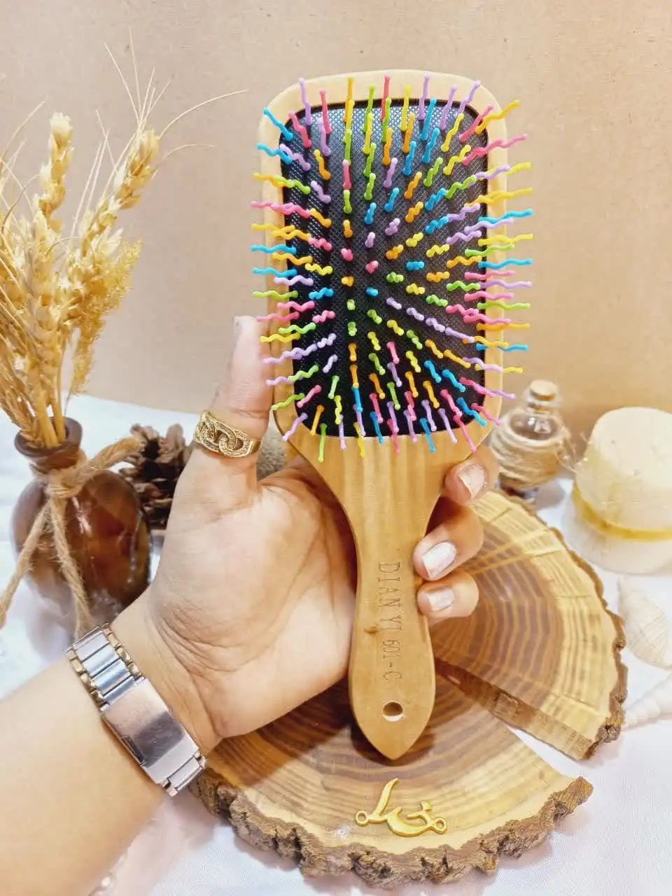برس مو بامبو دندانه پلاستیکی رنگی مربعی سایز بزرگ دیانی DIAN YI کد 601C