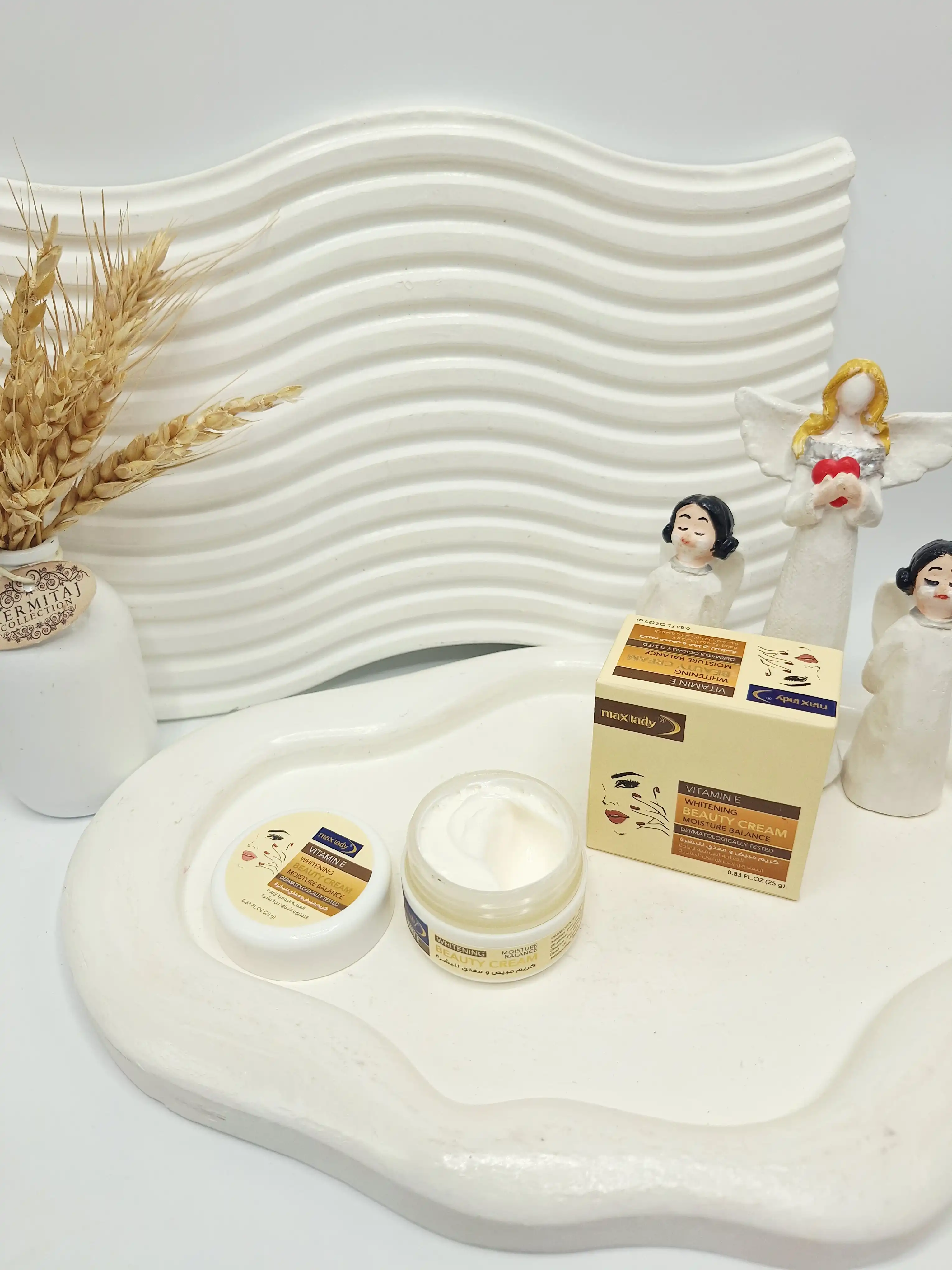کرم سفید کننده و مغذی پوست ویتامین E و مناسب حفظ تعادل رطوبت پوست برند مکس لیدی کد 4711